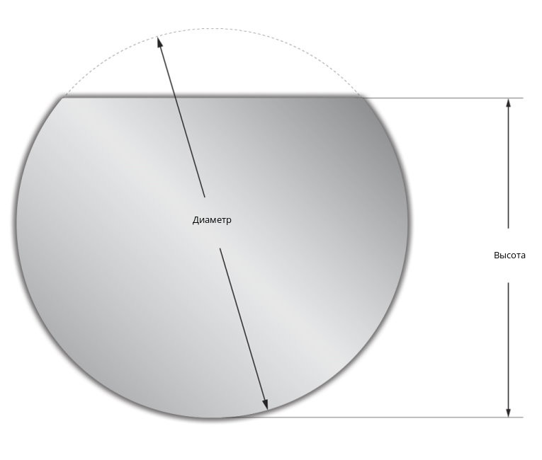 Размеры зеркала задаются двумя параметрами: Диаметр и Высота. Диаметр – это диаметр изначального круглого зеркала, от которого «отрезается» зеркало Moon Bowl. Если Высота равна половине Диаметра, то зеркало будет иметь форму половины круга.