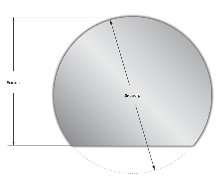 Размеры зеркала задаются двумя параметрами: Диаметр и Высота. Диаметр – это диаметр изначального круглого зеркала, от которого «отрезается» зеркало Moon Rise. Если Высота равна половине Диаметра, то зеркало будет иметь форму половины круга.