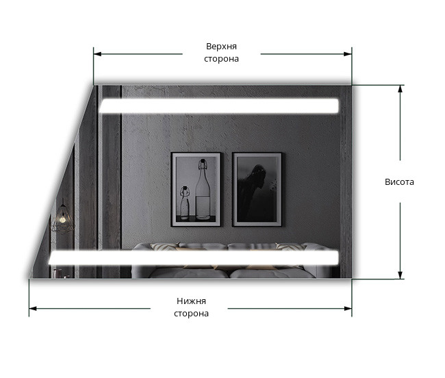 Дзеркало Dolores LED 3 – це дзеркало із світлодіодною підсвіткою трапецієвидної форми, яка ідеально підходить для використання в приміщеннях мансардних поверхів з похилою стелею або похилими стінами. Кут нахилу верхньої грані дзеркала можна підібрати так, щоб він співпадав з кутом нахилу стіни або стелі. Яскрава підсвітка прекрасно освітить Ваше обличчя, не залишаючи на нім тіней!